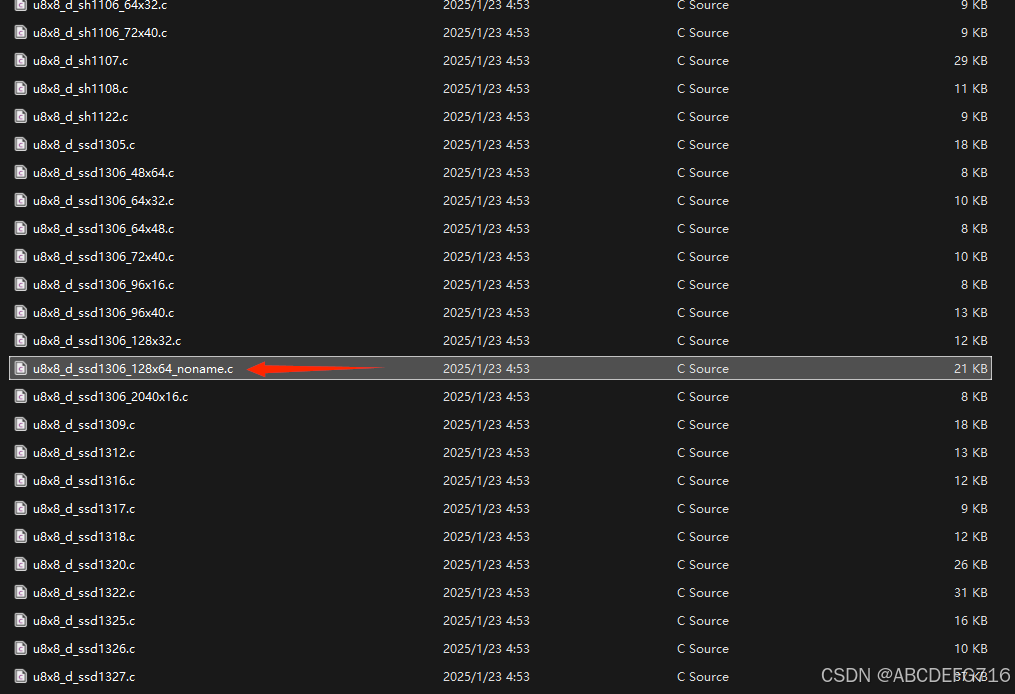 步骤3:将u8x8_d_**************.c的文件只保留所用到的屏幕使用的文件 u8x8_d_ssd1306_128x64_noname.c