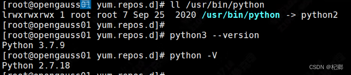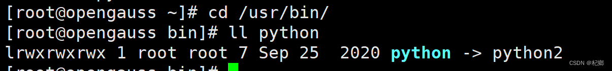 进入/usr/bin/使用ll命令可以发现,现在python指向的是2