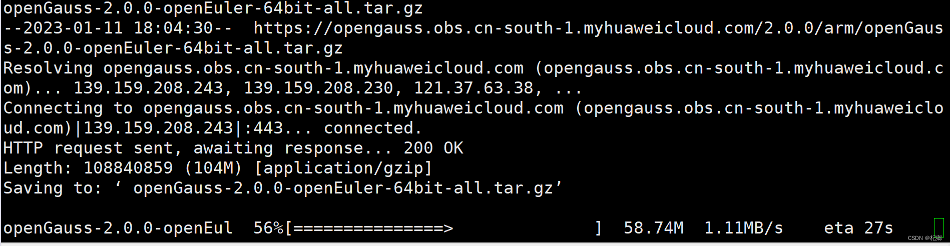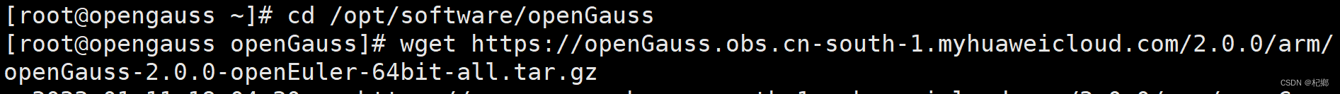 ③使用wget下载数据库安装包到安装包目录。——要切换到/opt/software/openGauss目录下
