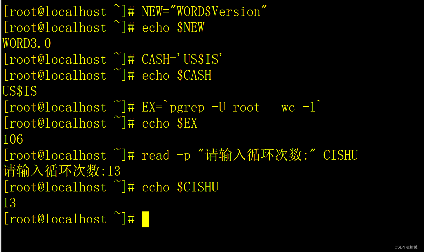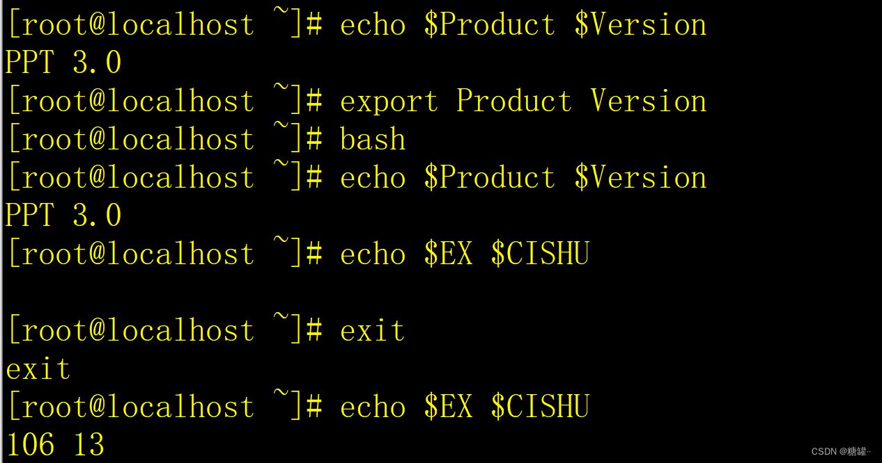 例:echo $EX $CISHU