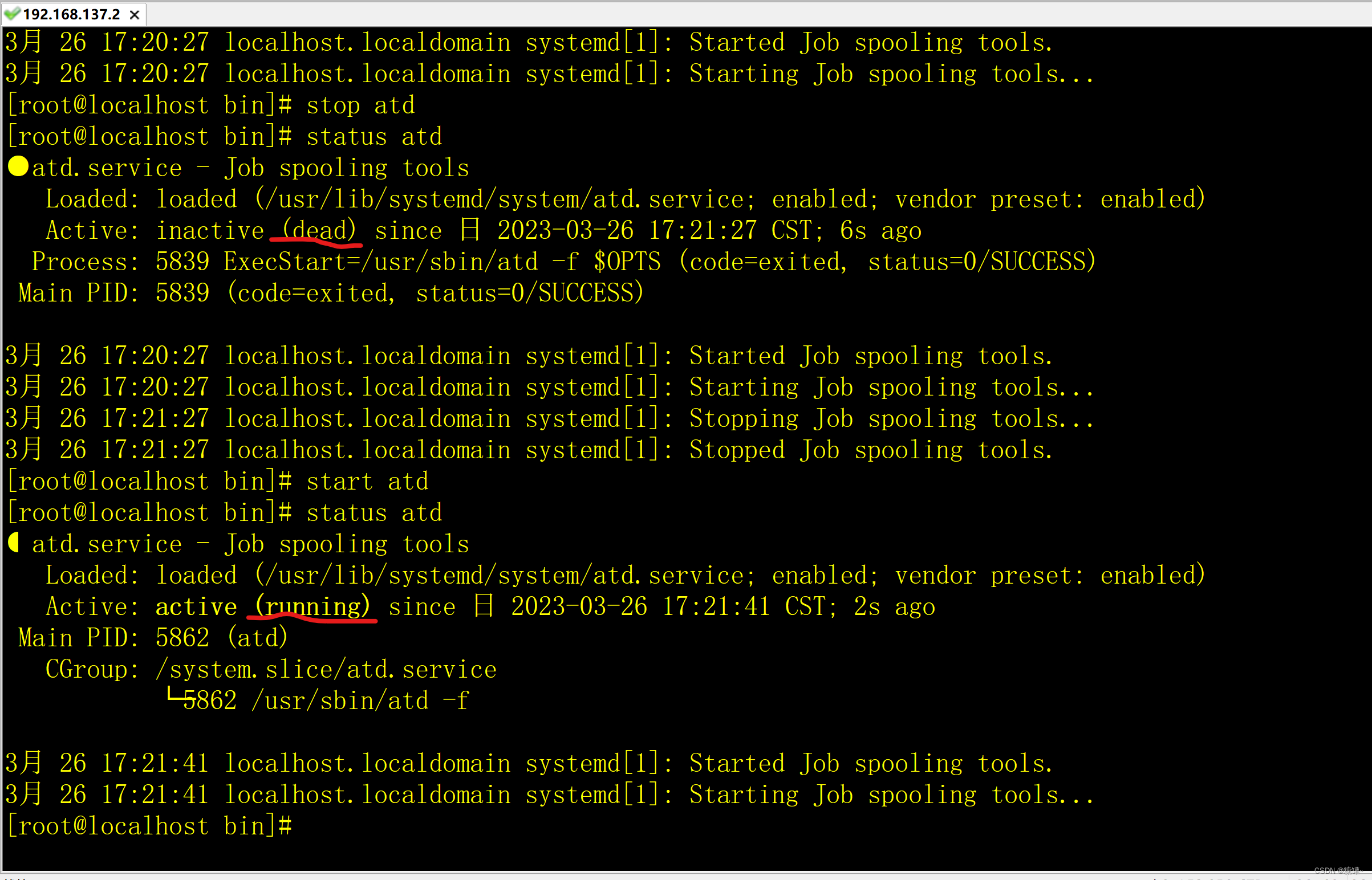status atd(显示该正在running)