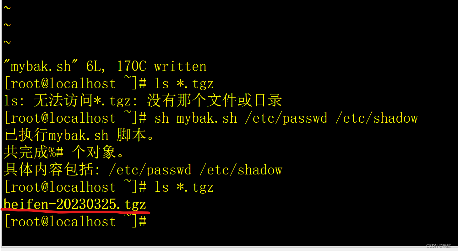 [root@localhost ~]# sh mybak.sh /etc/passwd /etc/shadow