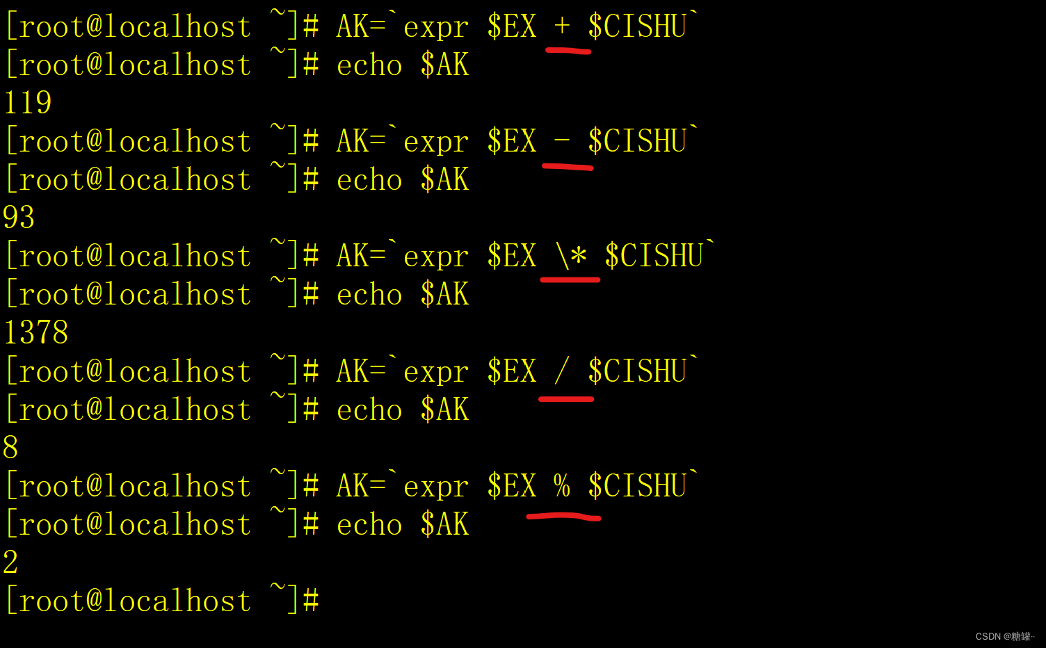AK=`expr $EX + $CISHU` (假定read 时输入15)