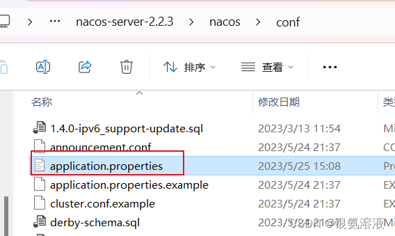 下载成功后进行解压,然后进入解压后的文件夹中找到conf,conf里面有nacos默认的端口号(8848),如果你的项目端口号和nacos冲突可以在这里进行修改