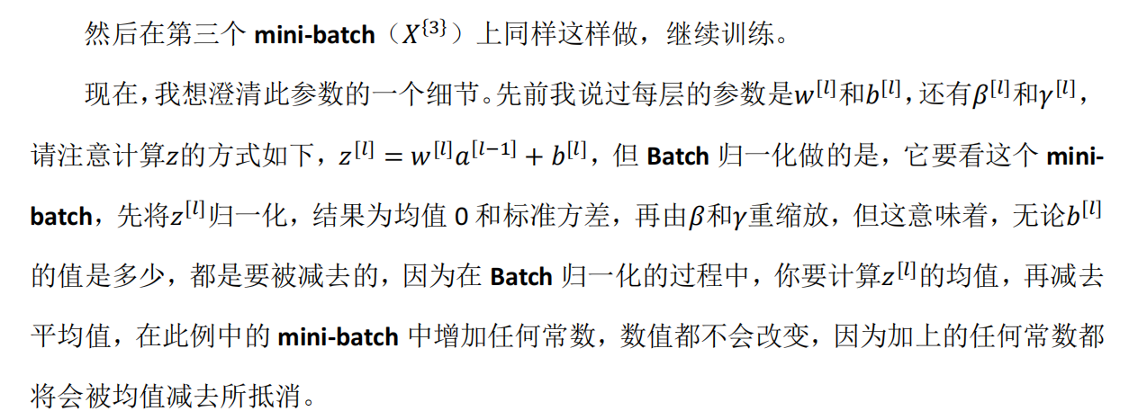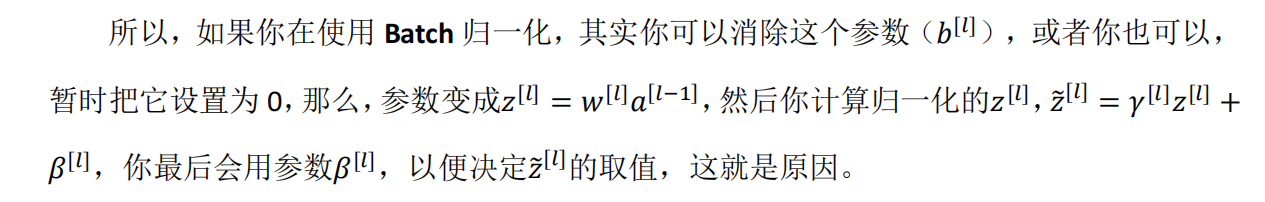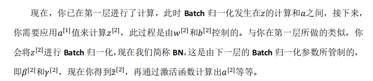 协变量偏移如何影响神经网络呢?当数据集发生改变时,我们计算出的a也会发生改变,隐藏单元的值也在发生改变,这就发生了协变量偏移的问题。那我们的批量归一化是如何处理的呢?它减少了隐藏单元值分布的变化量,批量归一化保证我们的数据无论如何变化,归一化后的z的均值和方差保持不变。因此批量归一化减少了输入值变化的问题,真正改变这些值使其更稳定,它减弱了早期层参数必须做的与后续层参数必须做的之间的耦合。