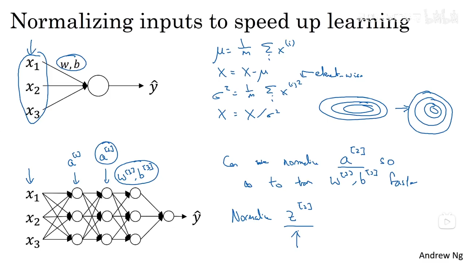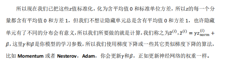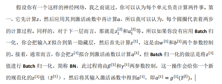 在逻辑回归中我们可以使用归一化对数据集进行处理,这样梯度下降的过程就会加快,同样,在神经网络中,我们也可以对各个隐藏层进行归一化,哪是对a还是对z呢?那么实际上我们将归一化z的值而不是a的值。究竟应该归一化哪个值,目前还存在争议(目前归一化z的值更多)。