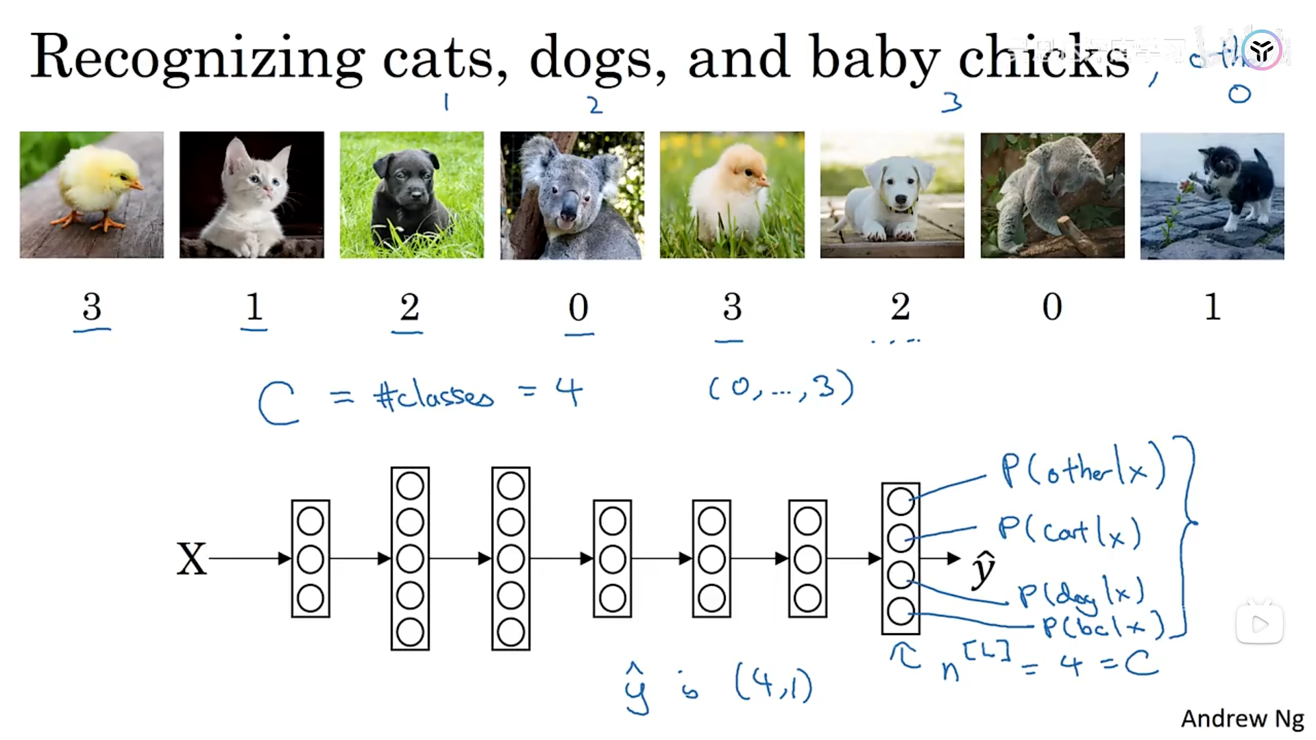 示例如下所示,输出的是四个特征,分别对应着4个类别的概率。