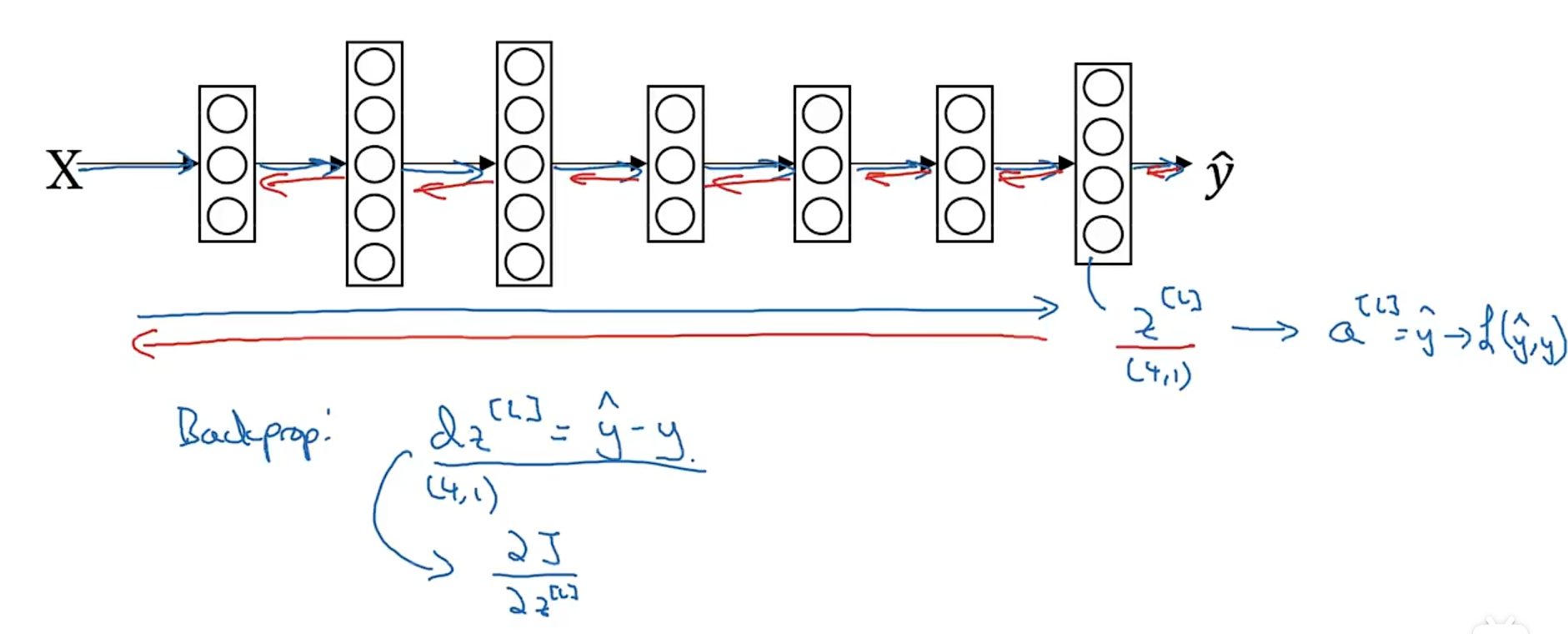 那当我们训练一个输出层为softmax激活函数的深度神经网络是,最后一层的反向传播应该如何做(图示)。