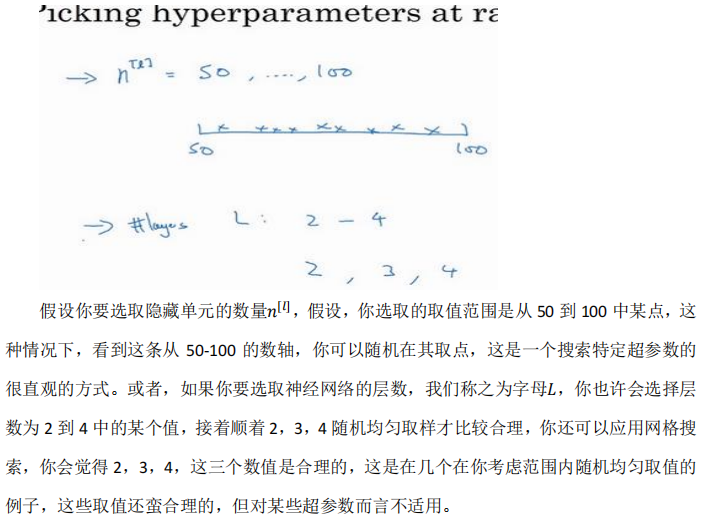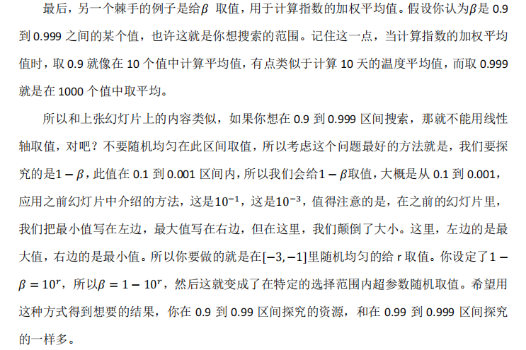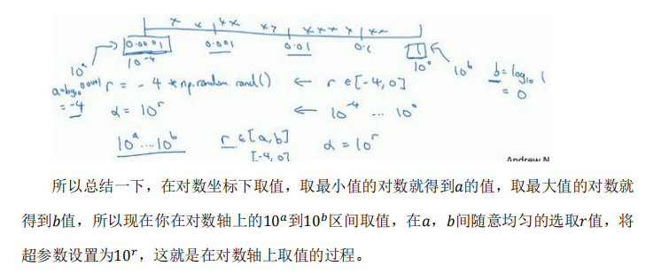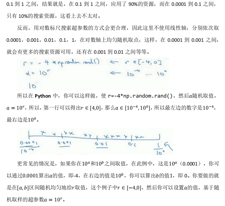 在超参数范围中,随机取值可以提升你的搜索效率。但随机取值并不是在有效范围内的随机均匀取值,而是选择合适的标尺,用于探究这些超参数,这很重要。