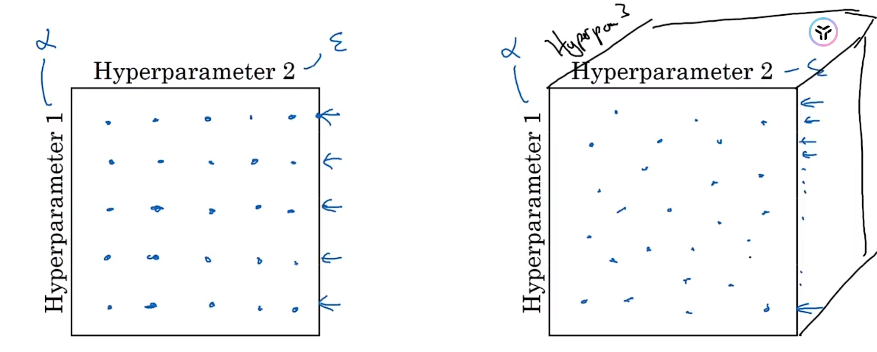 当我们事先不知道哪些超参数更加重要时,对于超参数的取值我们常常是均匀或者随机采样。总的来说,我们需要对超参数形成的空间进行采样,不断调试这些参数。如下图所示: