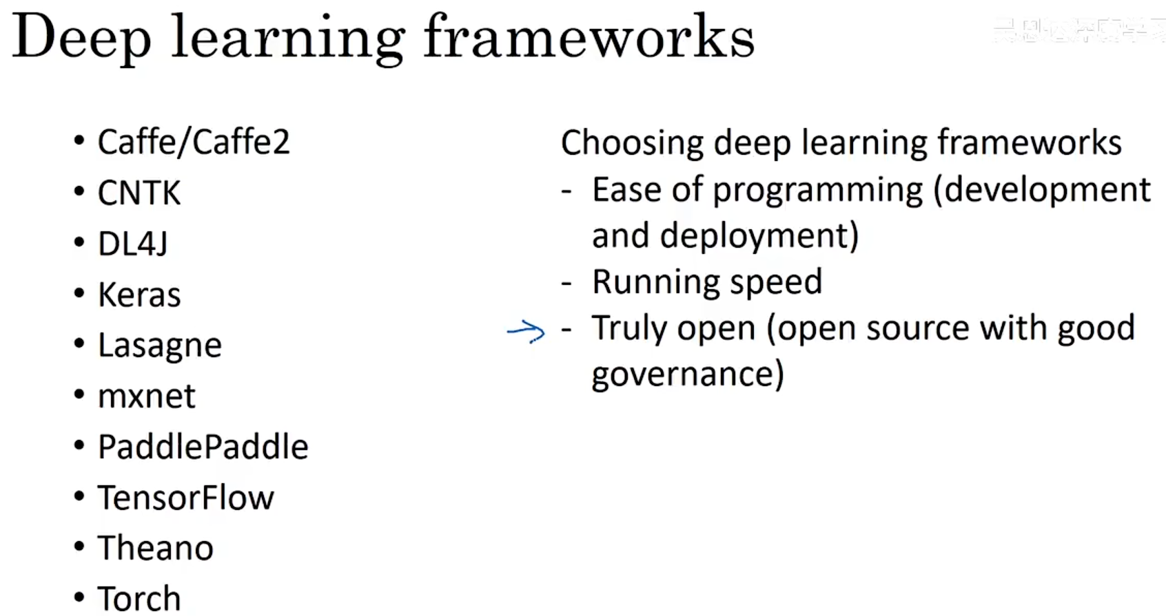 选择深度学习框架的一些建议:编程容易、运行速度、真正开放、编程的语言。