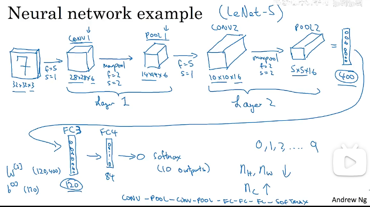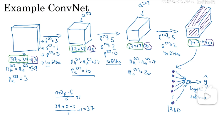 到最后一层卷积结束时,我们可以将最终的特征矩阵展开成一个矢量数据,然后使用逻辑回归或者softmax对数据进行预测。那么再在这整个深层的卷积网络中有很多超参数是需要我们设定的。
