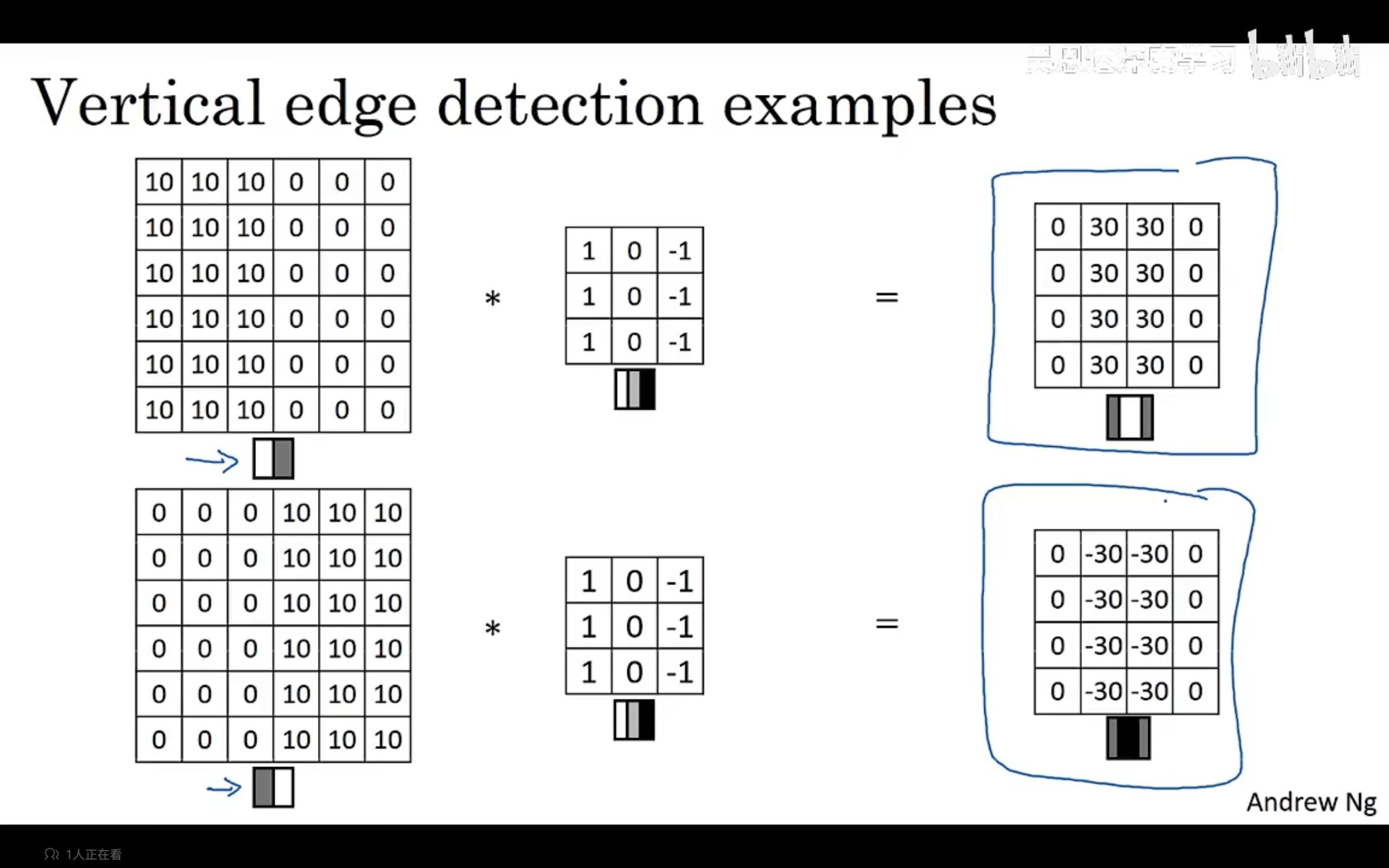 示例中的滤波器区分了从亮到暗和从暗到亮的边缘。