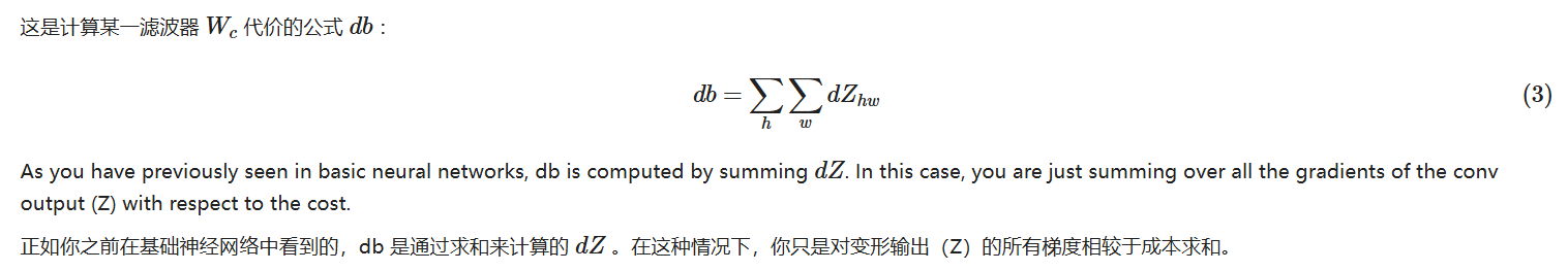 db[:, :, :, c] += dZ[i, h, w, c] # 累加偏置梯度