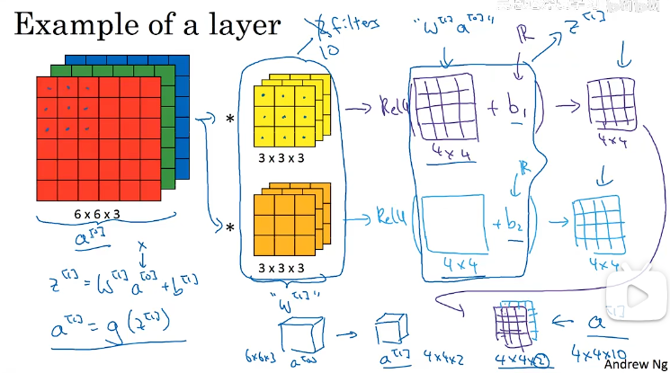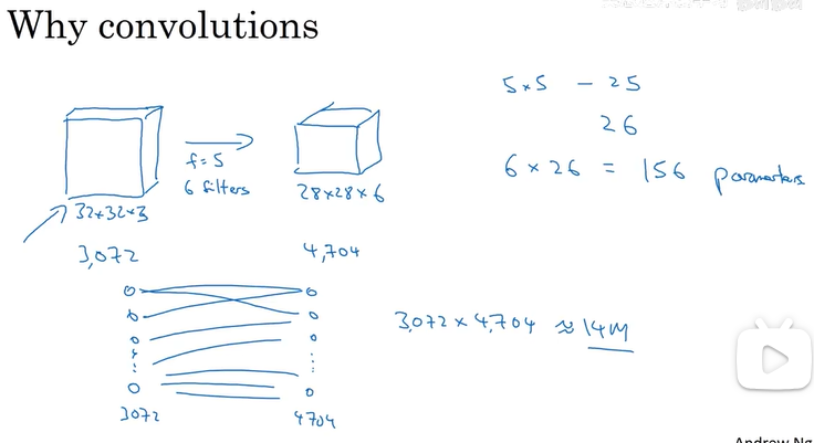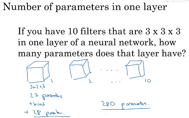下面的示例中的单层卷积网络有多少个参数呢?一个滤波器有333+1=28个参数,10个滤波器就是280个参数。无论多大的图像,如果想要学习其中的10个特征,那么参数数量都会时280,这样不会导致过拟合。