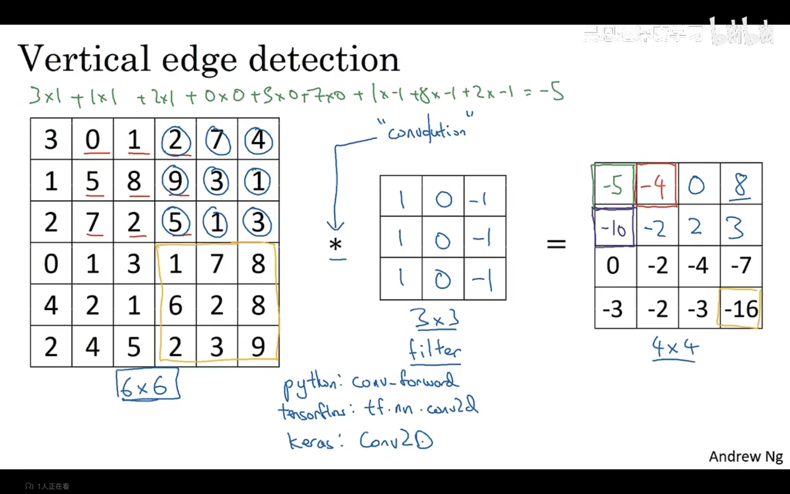 如果原图像是n×n的矩阵,滤波器为f×f的矩阵,那么卷积之后得到的将会是n-f+1×n-f+1的新的图像矩阵。