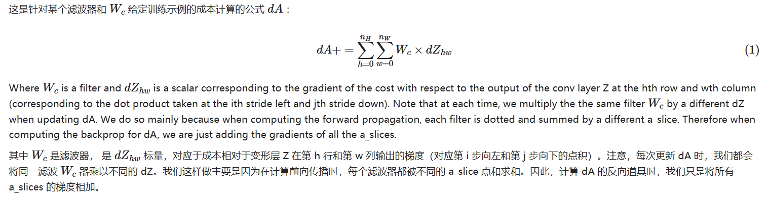 dA_prev[i, :, :, :] = da_prev_pad[pad:-pad, pad:-pad, :] # 去掉填充部分,写回原始尺寸
