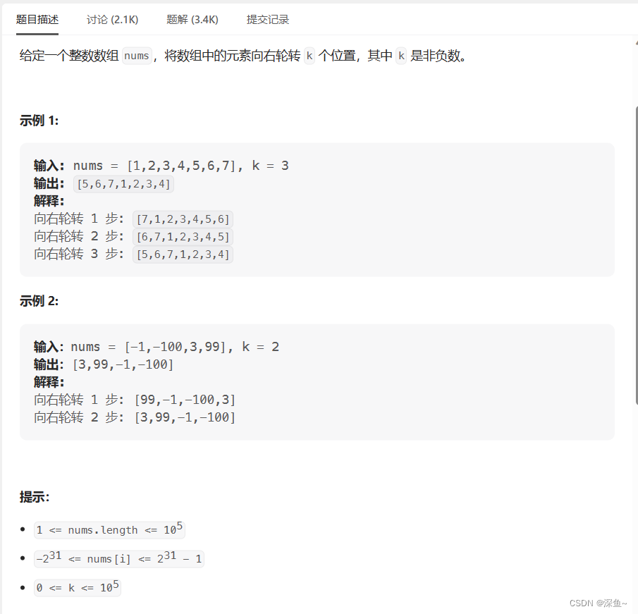 k=k%numsSize;的意思就是如果k的大小大于numsSize的大小,那么就需要对k进行取模操作,这样避免重复操作,效率更高