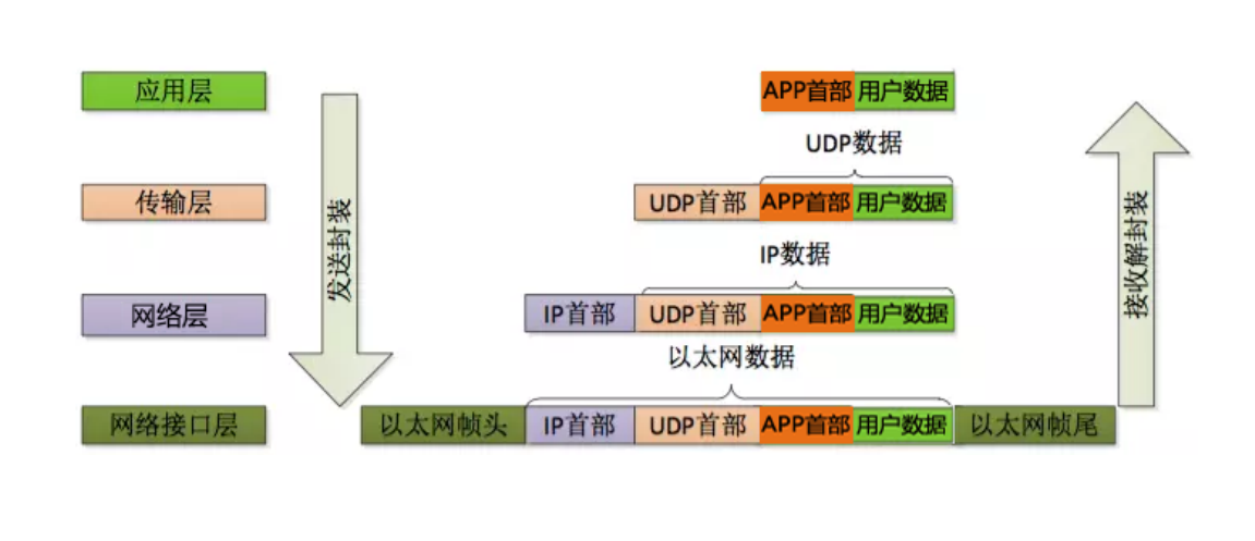 自下向上传递时,不保留头部数据。 上一层封装之后的内容就是作为下一层的数据去使用。