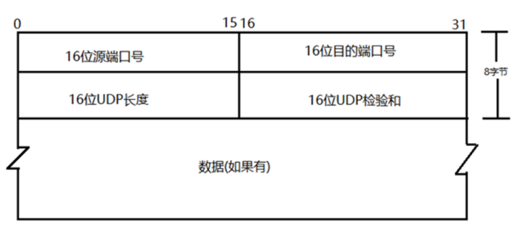 3. 长度:UDP用户数据报的长度,最小值是8(仅有首部)。