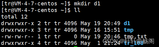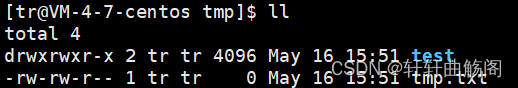 在之后,查看文件的属性,在使用 ll 指令后,我们可以看到