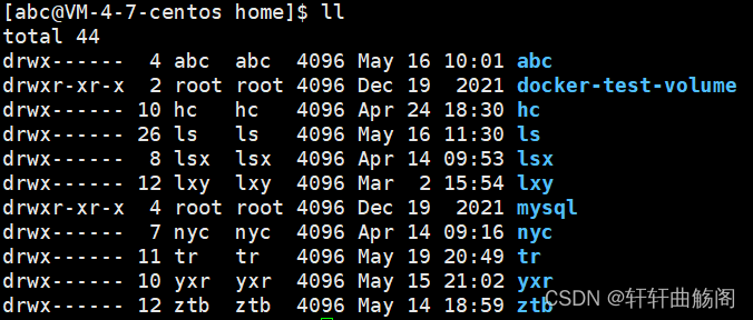 对于home目录下的任何一个用户来说,其目录的所有者和所属组都是自己