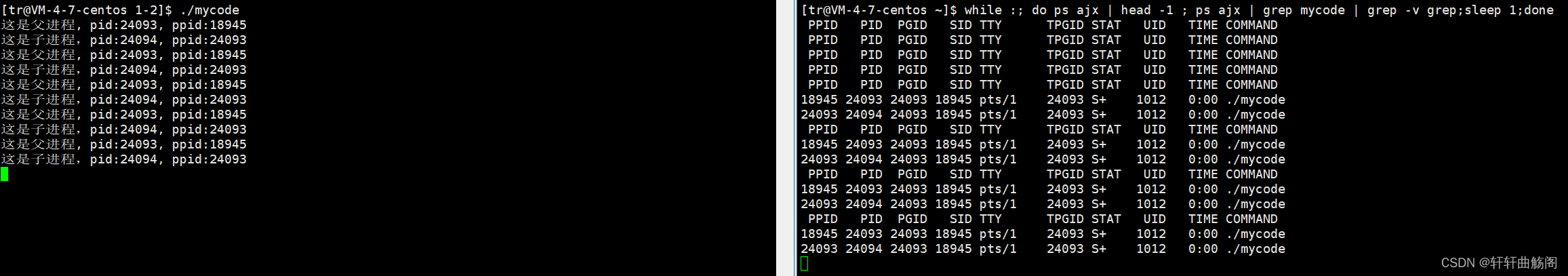 来不断查看与mycode相关进程的状态