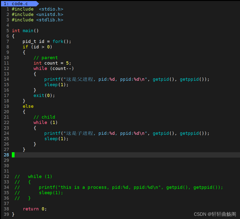 printf("这是一个进程\n");