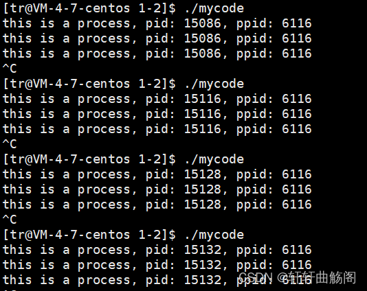 在上面的多次运行中我们可以发现在不同运行期间PPID一般不变,我们查看可以发现