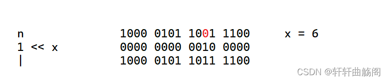 要想修改x位置的值为1,只需要对这个位置|上一个1,其余位置|上0,这样就可以将该位置修改成1,即