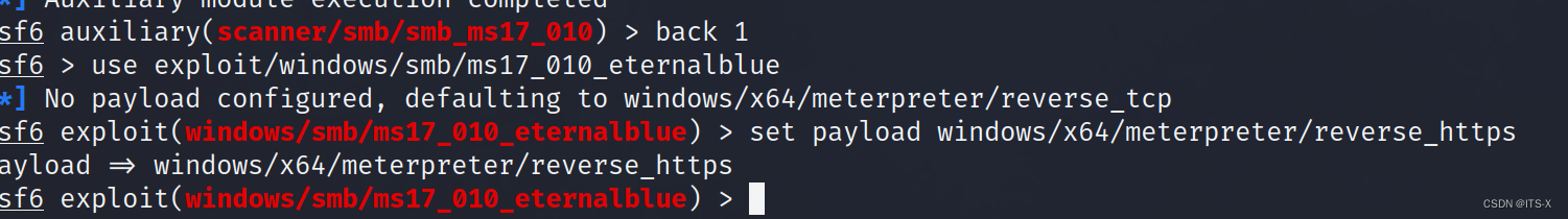 进入msf框架,使用MS17-010的漏洞验证模块。