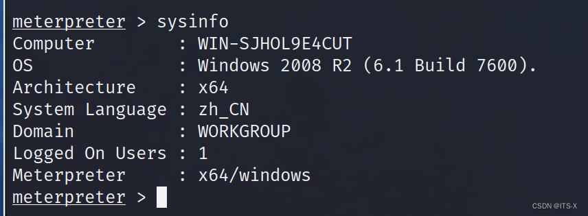 执行攻击,在经历了一段跑代码的界面后,成功进入met控制台》