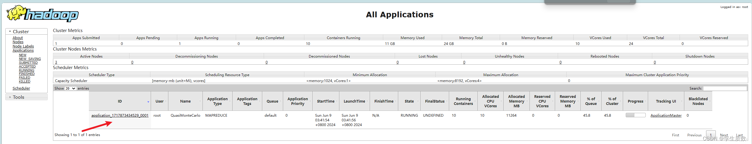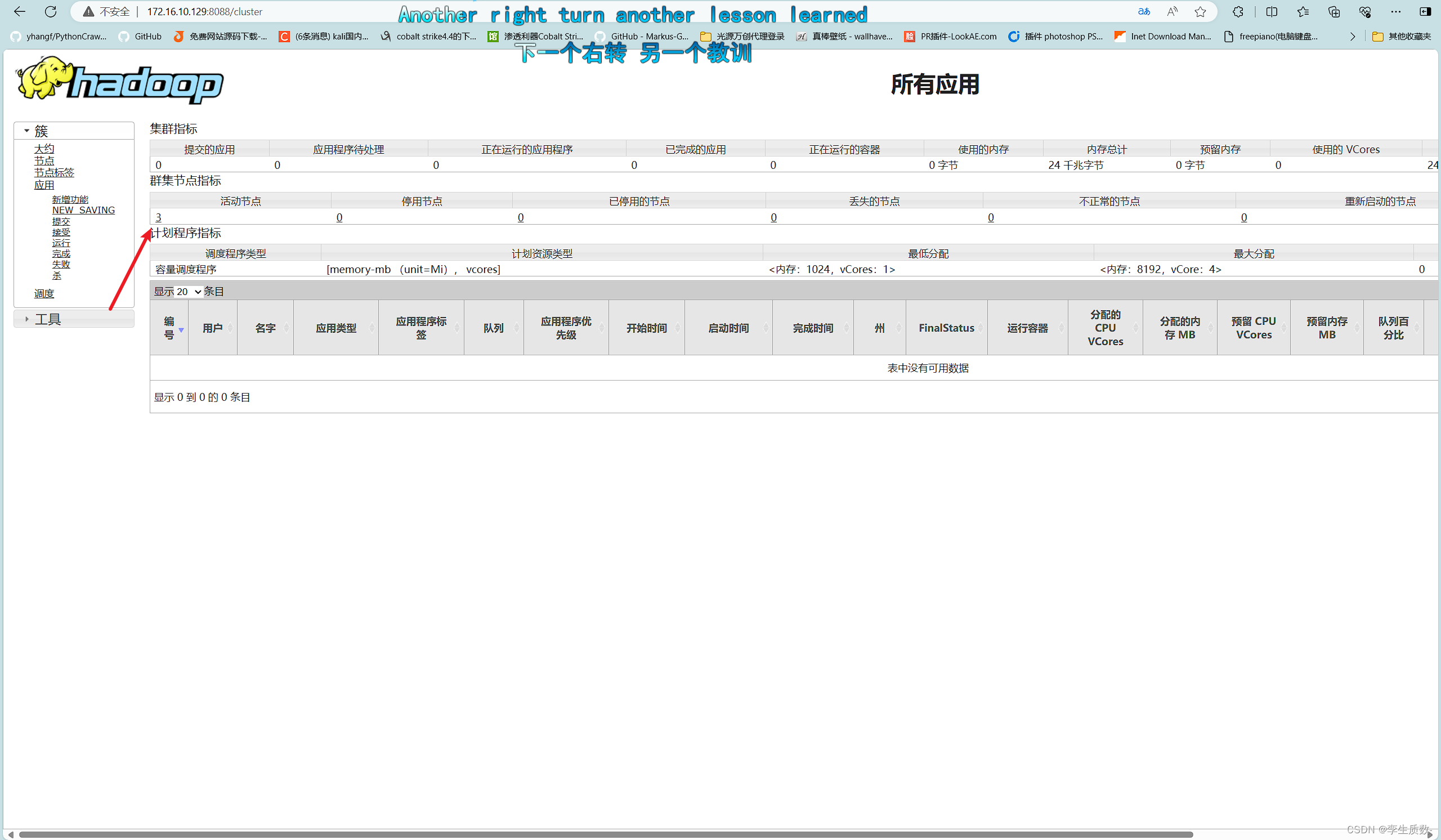 可以看到有三个节点在线。ResourceManager