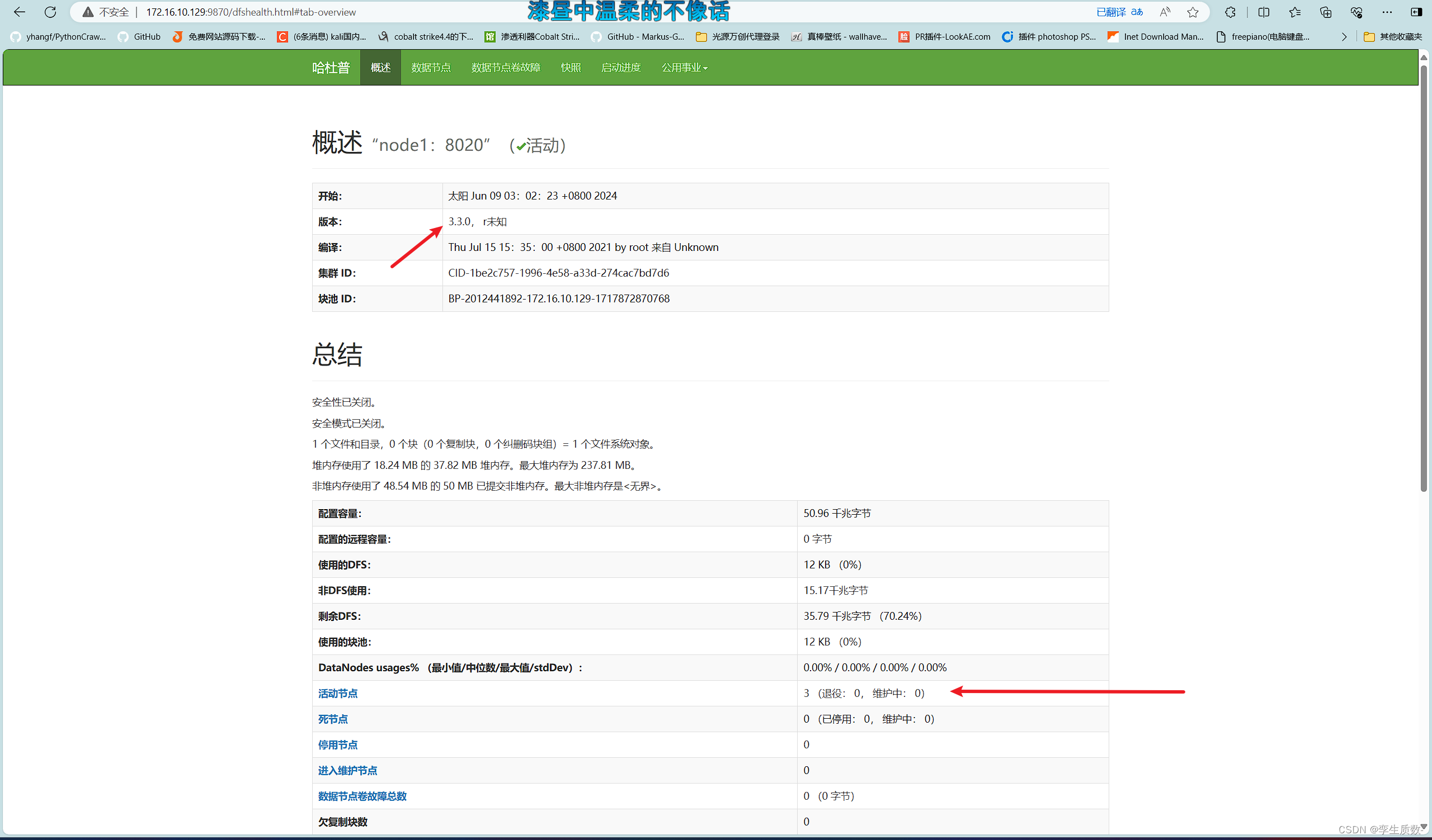 )是活动且可访问的。可以通过检查集群的日志文件或使用Hadoop的管理工具(如Ambari、Cloudera Manager等)来验证。