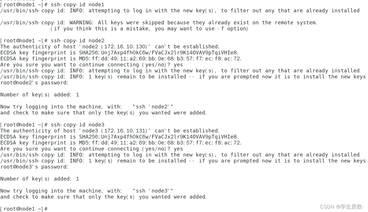 #经过测试,在三台服务器相互配置ssh免密后,不加上root@这个参数照样可以相互同步