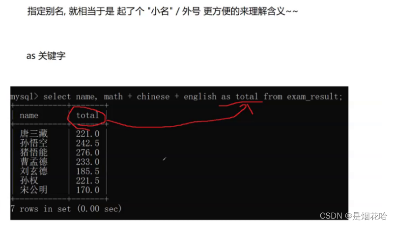 注意点:(orde by 可以后面接别名,比如计算总和时,前面有as total ,后面可以order by total),Where 不能后面接别名