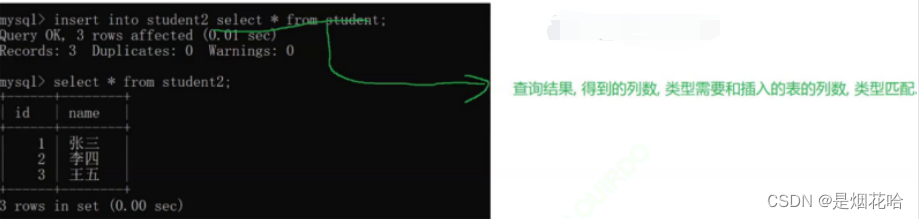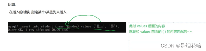 Insert into 表名 (id,name,age) values(1, ‘小红’,111) 注意点:插入字符串时记得用分号’ ’隔开