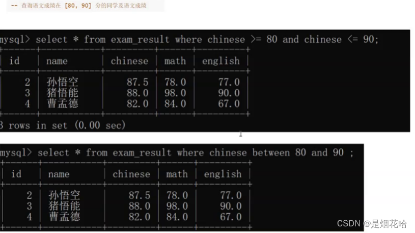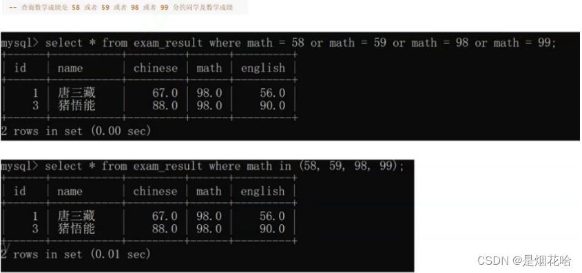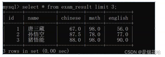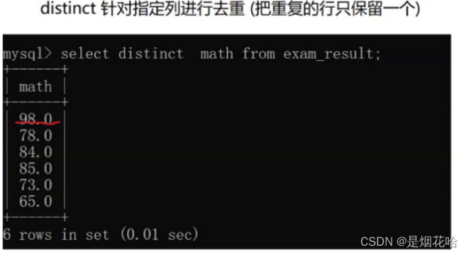 注意点:查询语句中的通配符 * 尽量不要使用,原因:数据量大时会降低查询效率,使用列名代替*,平时养成好习惯