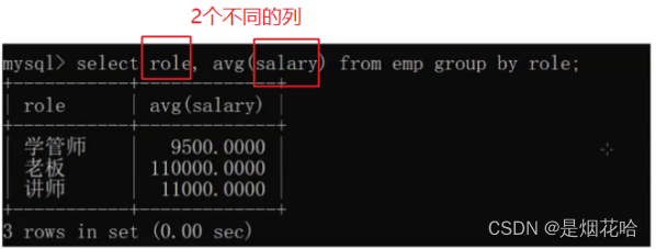 注意:group by 子句进行分组以后,需要对分组结果再进行条件过滤时,不能使用 where 语句,而需要用having