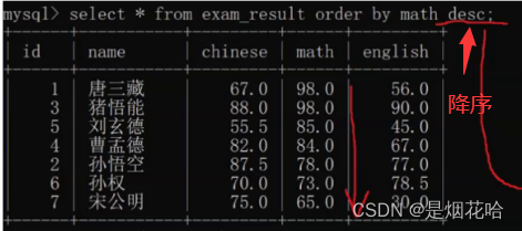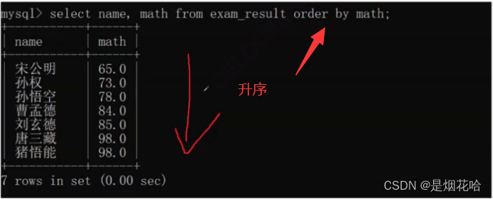 对查询的结果需要进行排序时,可以使用order by asc(asc 可以默认不写) 即order by