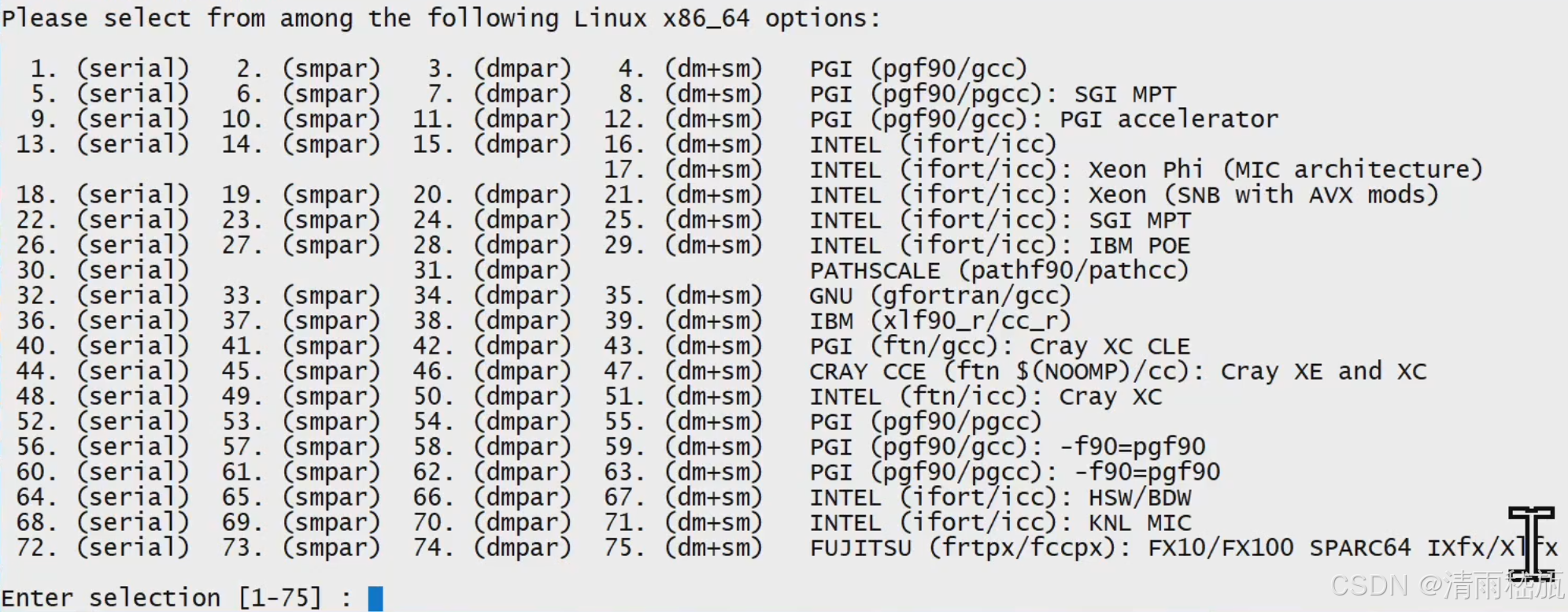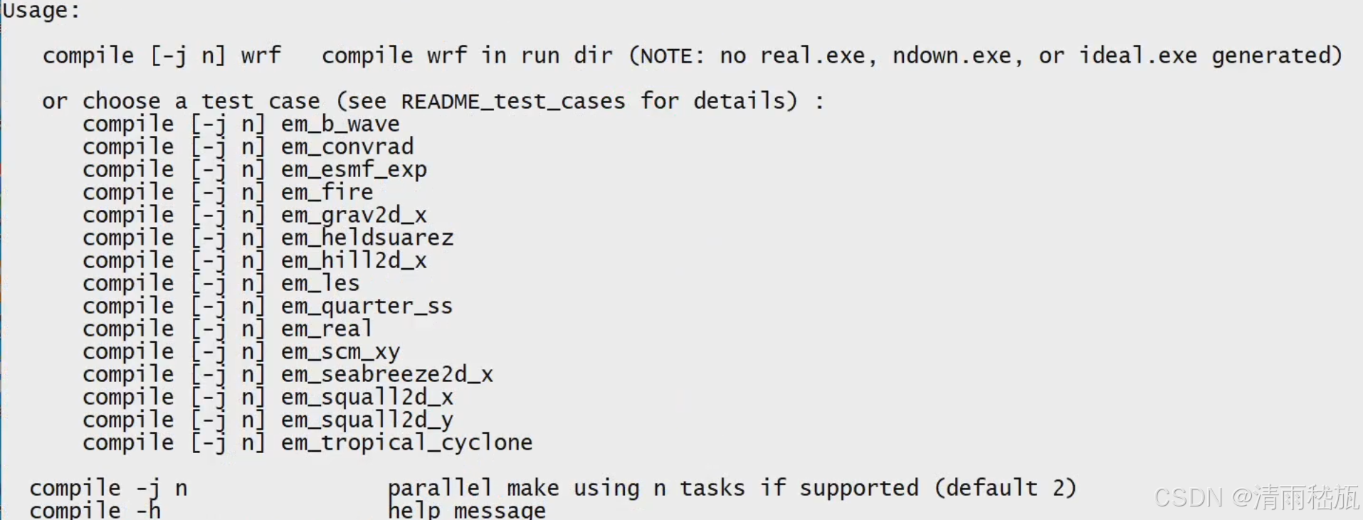 - 之后我们继续在WRF路径下输入 ./compile选择编译方式: