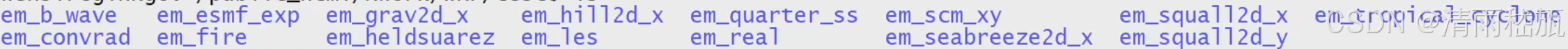 - 在这个文件夹里有多个文件,其中我们可以调的参数放在namelist.input中,接下来进行逐个解释: