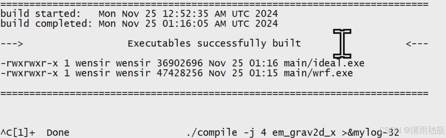 我们本次的实验是em_b_wave,选择4个核进行编译,在WRF下输入: