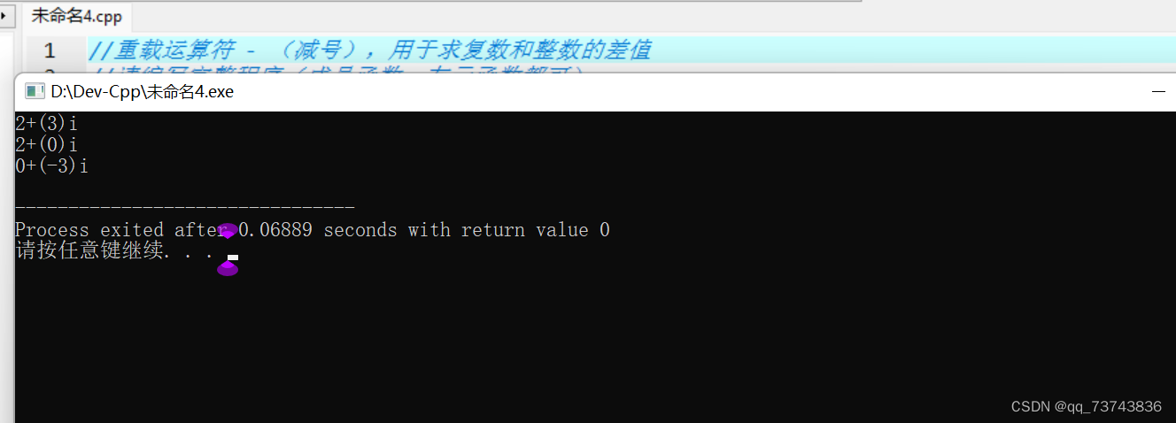 //重载运算符 - (减号),用于求复数和整数的差值
