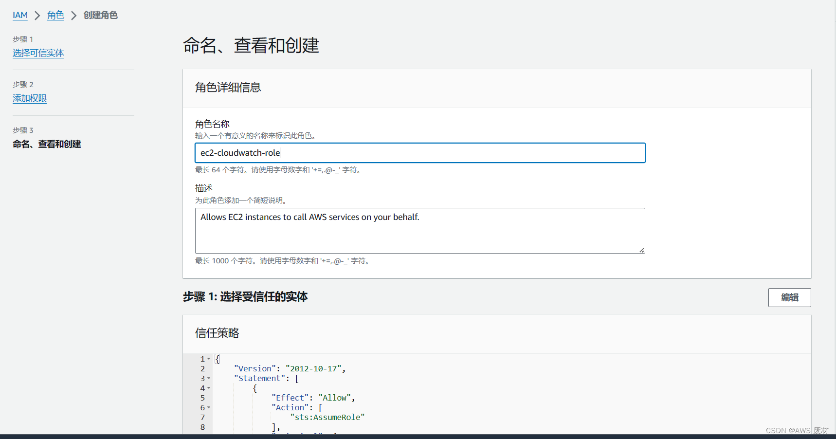 创建 IAM 角色和 用于 CloudWatch 代理的用户