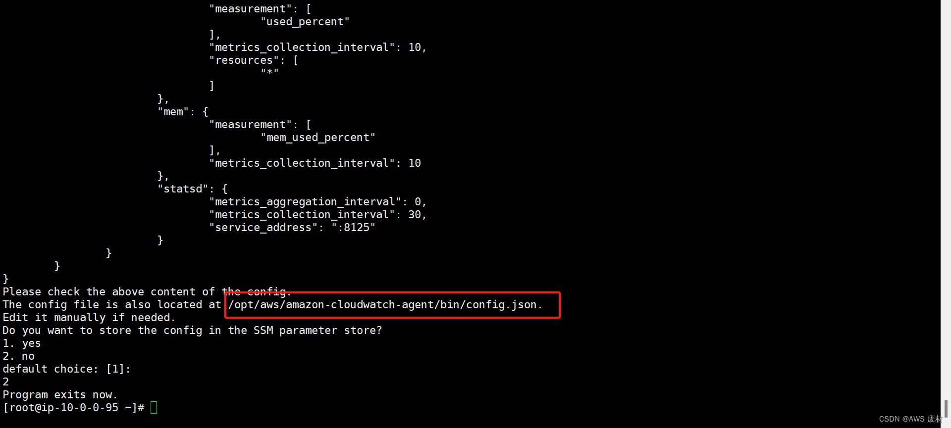 如果找不到配置文件地址或者路径Linux默认在/opt/aws/amazon-cloudwatch-agent/etc/amazon-cloudwatch-agent.json