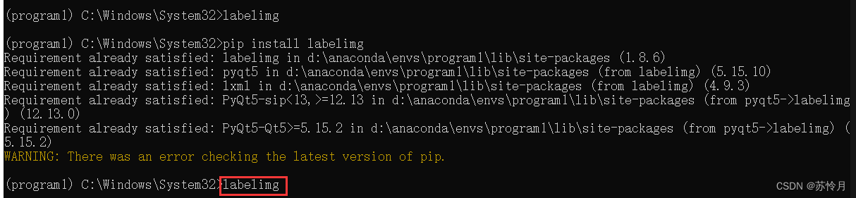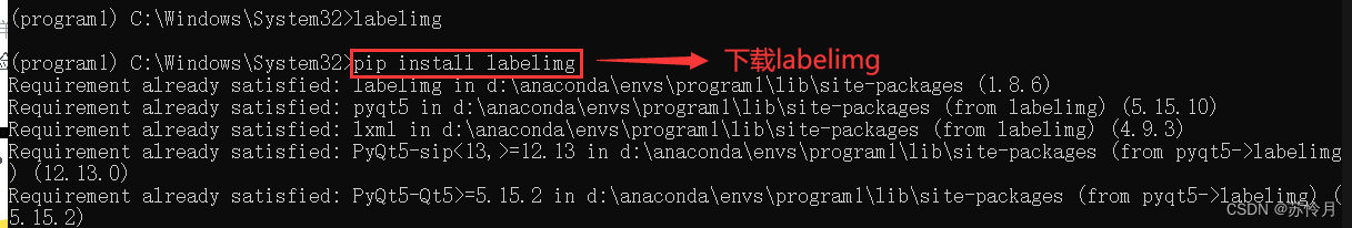 使用管理员命令提示符下载labelimg