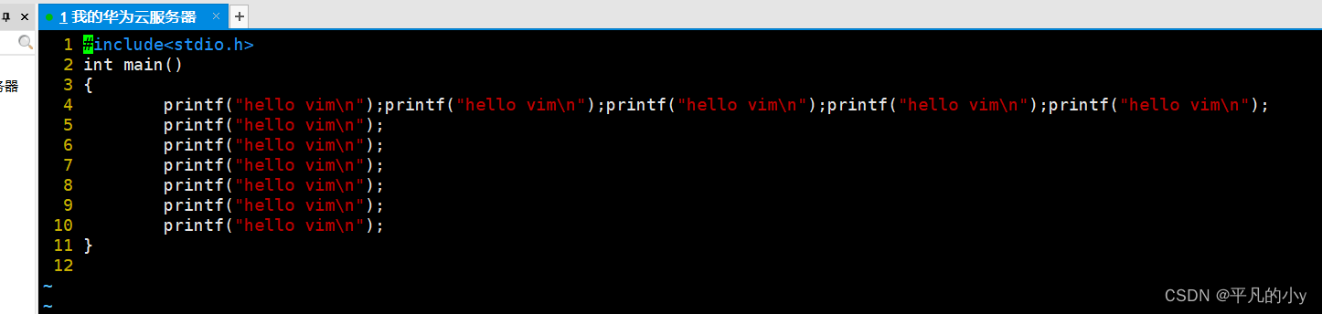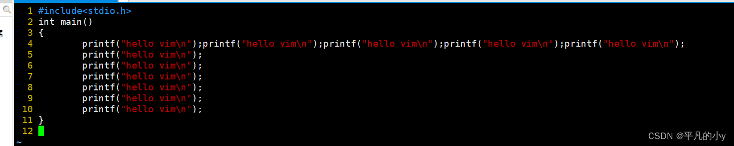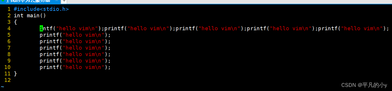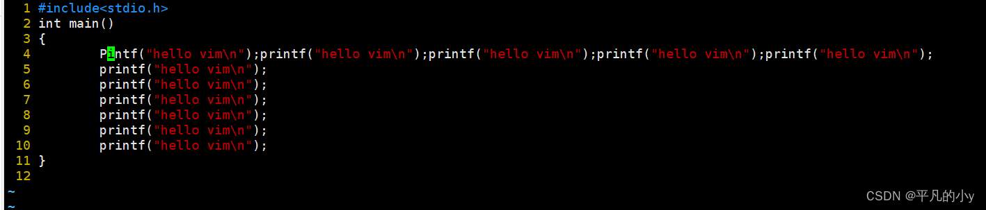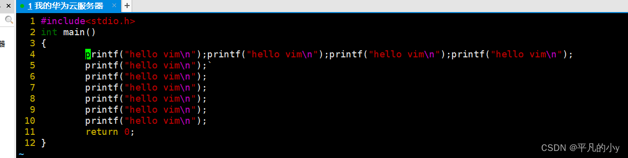 在左下角出现INSERT即成功进入到插入模式了,在此模式下,任何的输入(Esc除外)都会被当做数据插入到文本上,我们可以在此模式下写一些c语言代码