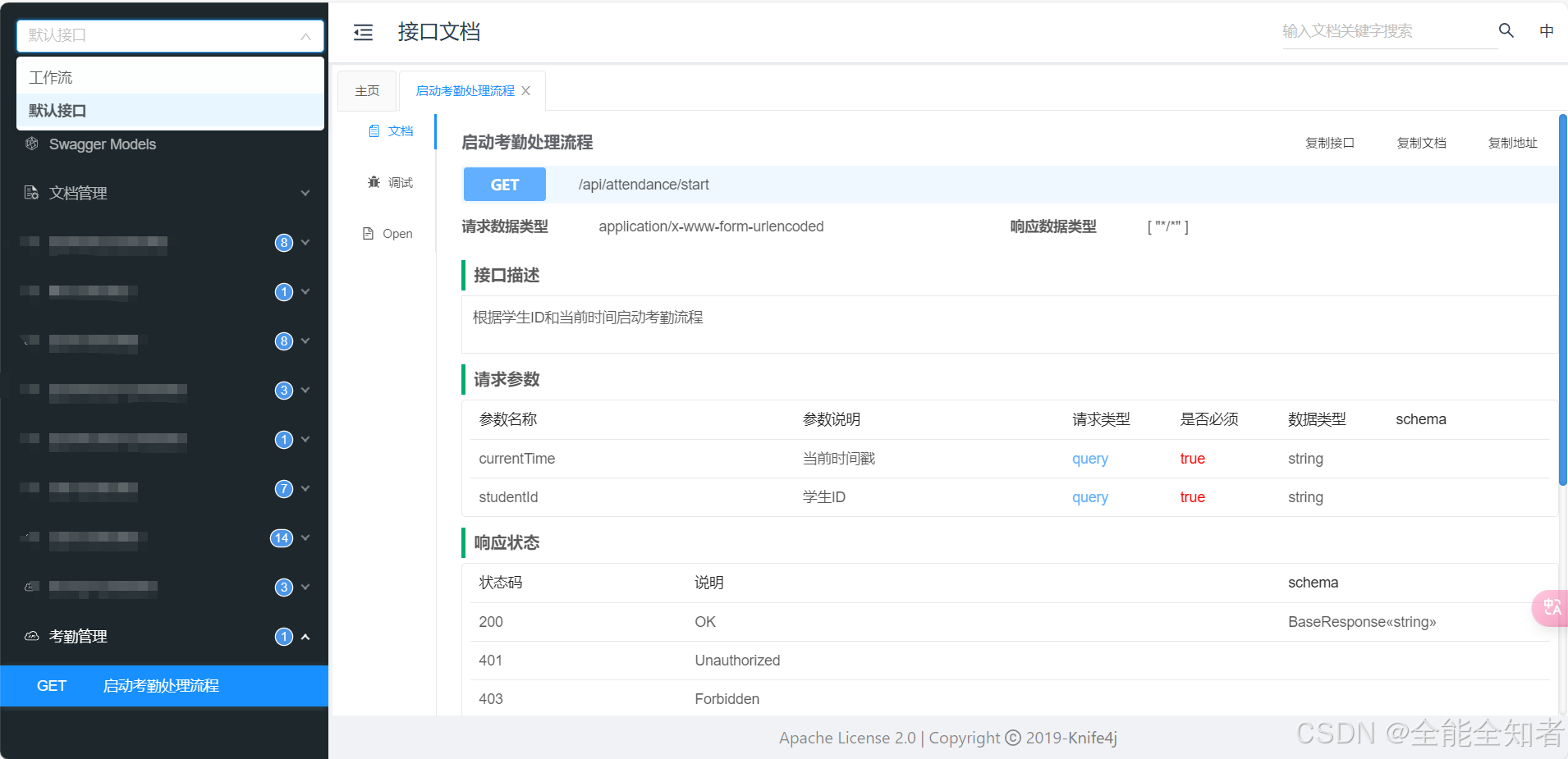 springboot整合Swagger接口文档,并配置Knife4jConfig实现最简单的多包扫描 有多少个不同控制层的包就有多少个bean, .groupName(“默认接口”)定义分组名称。配置访问路径,默认应该是 地址:端口号/doc.html。