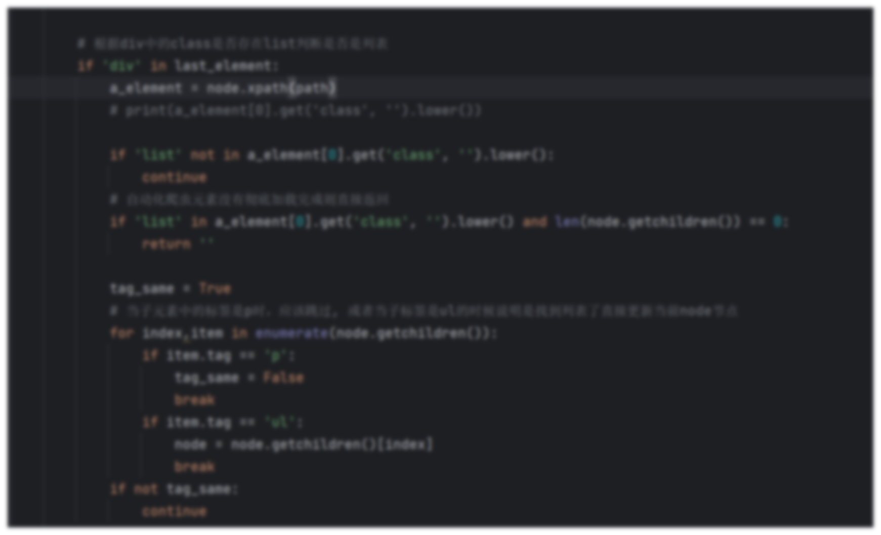 python简单易懂的lxml读取HTML节点及常用操作方法 处理HTML或XML文档时,获取节点的属性和属性值是非常常见的需求。下面详细解释如何获取标签的全部属性以及如何分别获取单个属性和属性值。接下来,我们根据子节点的属性构建一个完整的XPath路径。如果你只需要获取某个特定属性的值,可以直接通过键访问字典中的值。下面是一个综合示例,展示了如何获取节点的所有属性、单个属性以及如何处理特殊情况下的属性值。来获取节点的所有子节点,node.getparent()获取节点的所有父节点。首先,我们遍历一个节点的所有子节点,并获取每个子节点的XPath路径。